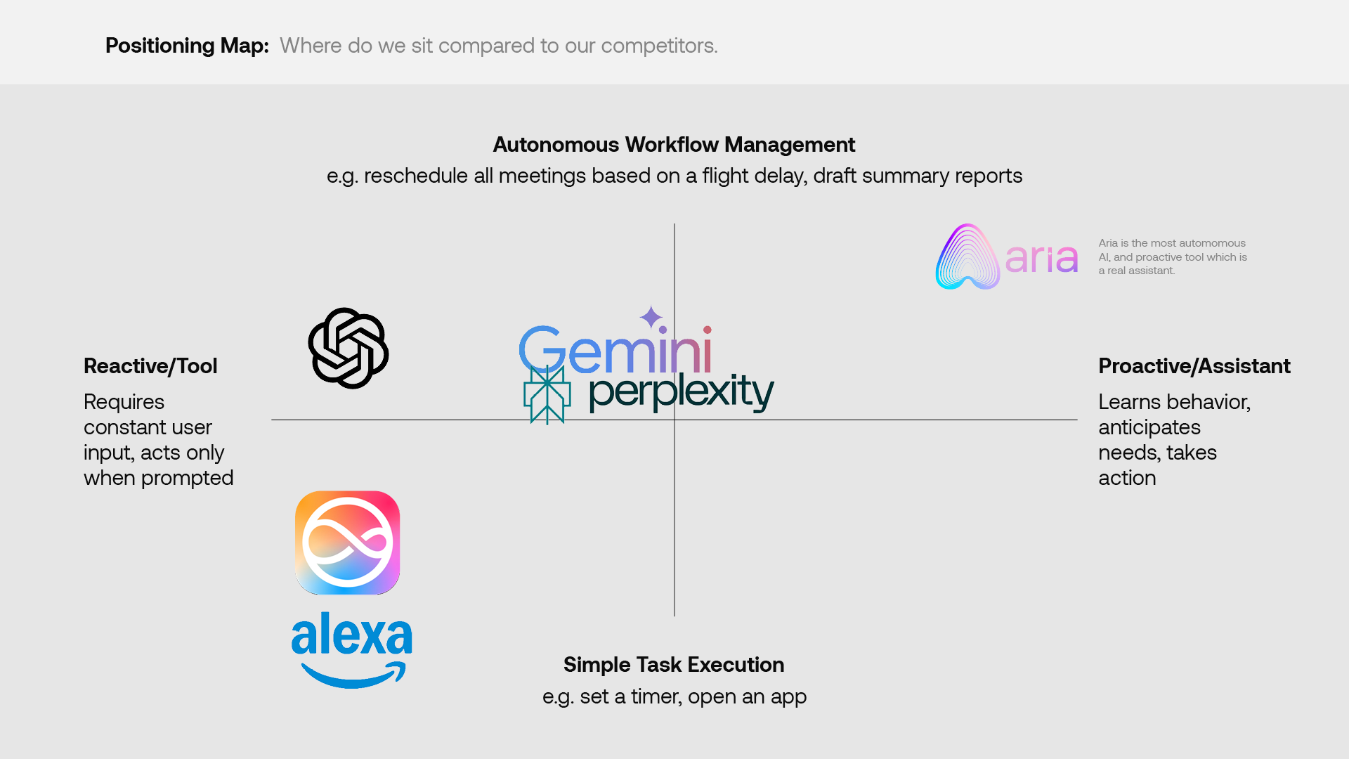 Aria had a problem that a lot of tech start ups have, that is everyone is starting a tech start up and the competition is fierce. Their product is great and solves real problems, but they faces the problem of how to get noticed with so many AI assistants on the market.